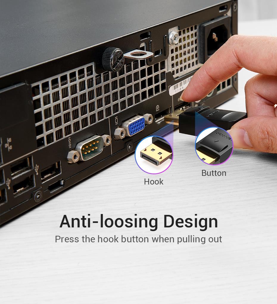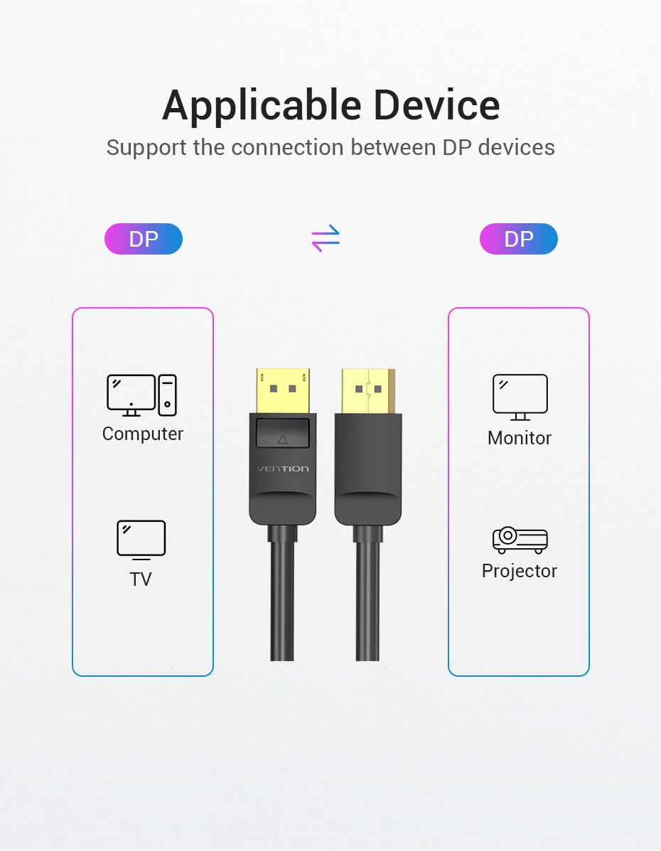 Summary: Vention DP Cable 2M Black. Cable length: 2 m, Connector 1: DisplayPort, Connector 2: DisplayPort. Cable diameter: 7 mm. Quantity per pack: 1 pc(s)
