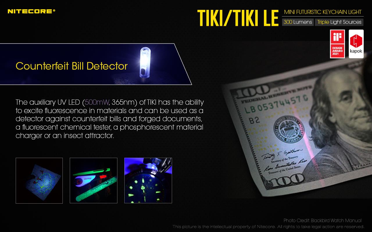 Auxiliary Red and Blue LEDs: This is the "LE" (Law Enforcement or Limited Edition, depending on context) differentiator. Instead of the UV or high-CRI white LEDs found on the standard TIKI, the TIKI LE features:
