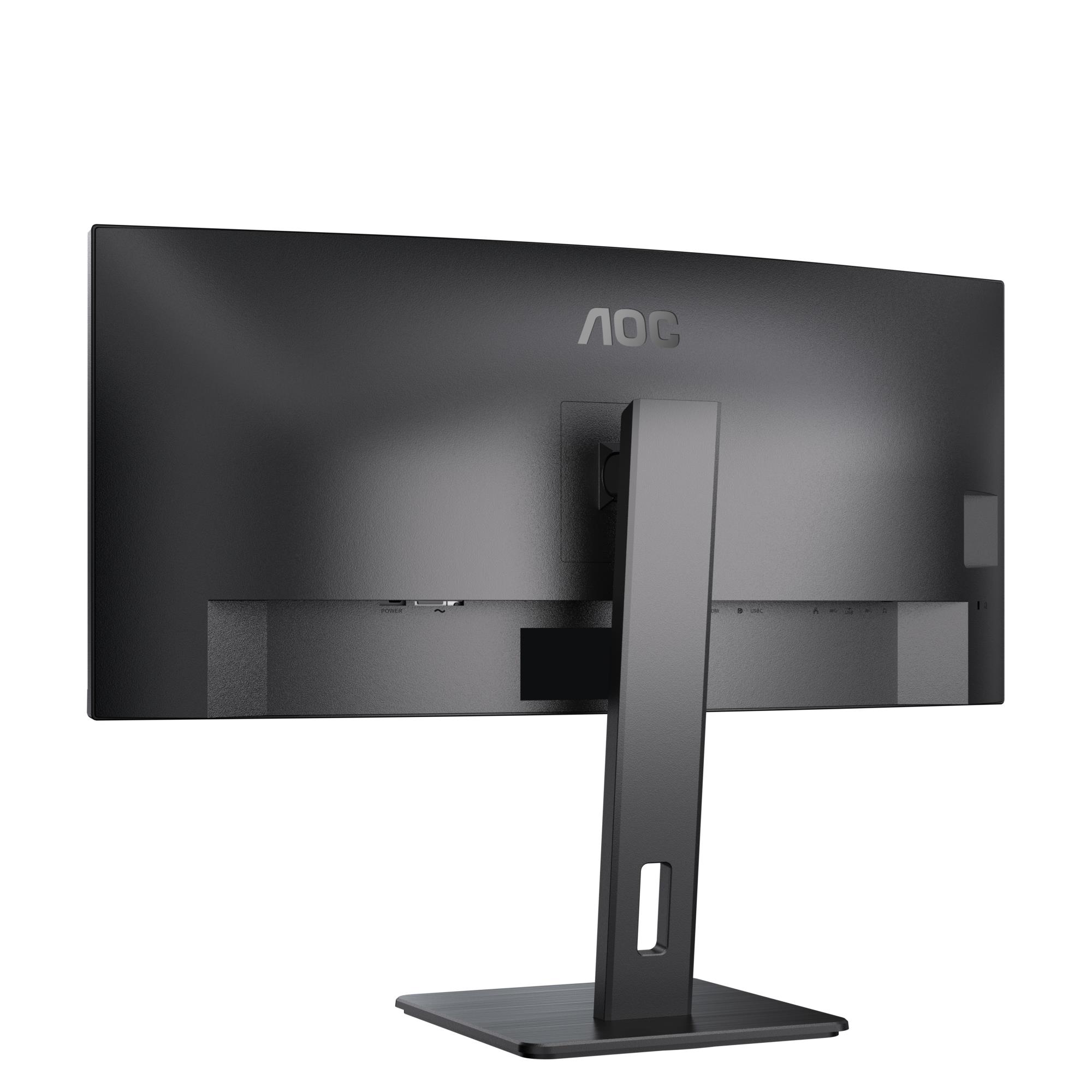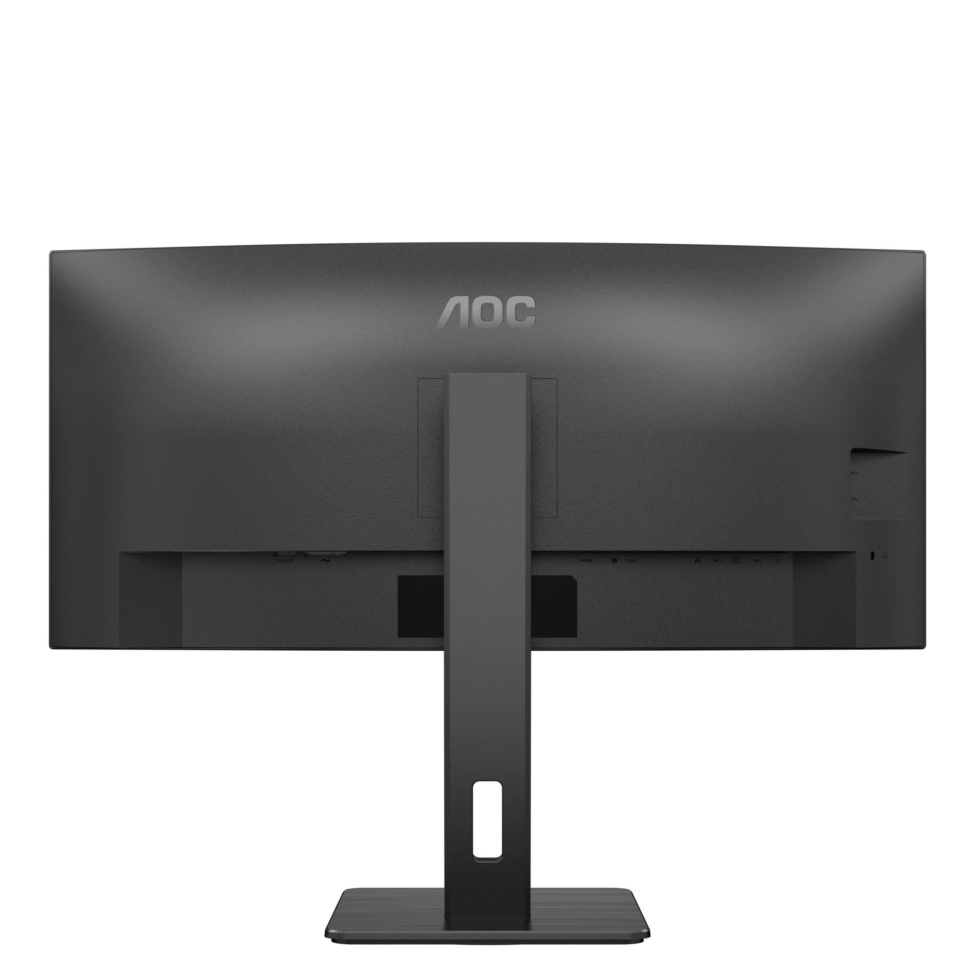 Summary: AOC CU34P3CV. Display diagonal: 86.4 cm (34"), Display resolution: 3440 x 1440 pixels, HD type: UltraWide Quad HD, Display technology: LED, Response time: 4 ms, Native aspect ratio: 21:9, Viewing angle, horizontal: 178°, Viewing angle, vertical: 178°. Built-in speaker(s). Built-in USB hub, USB hub version: 3.2 Gen 1 (3.1 Gen 1). VESA mounting, Height adjustment. Product colour: Black