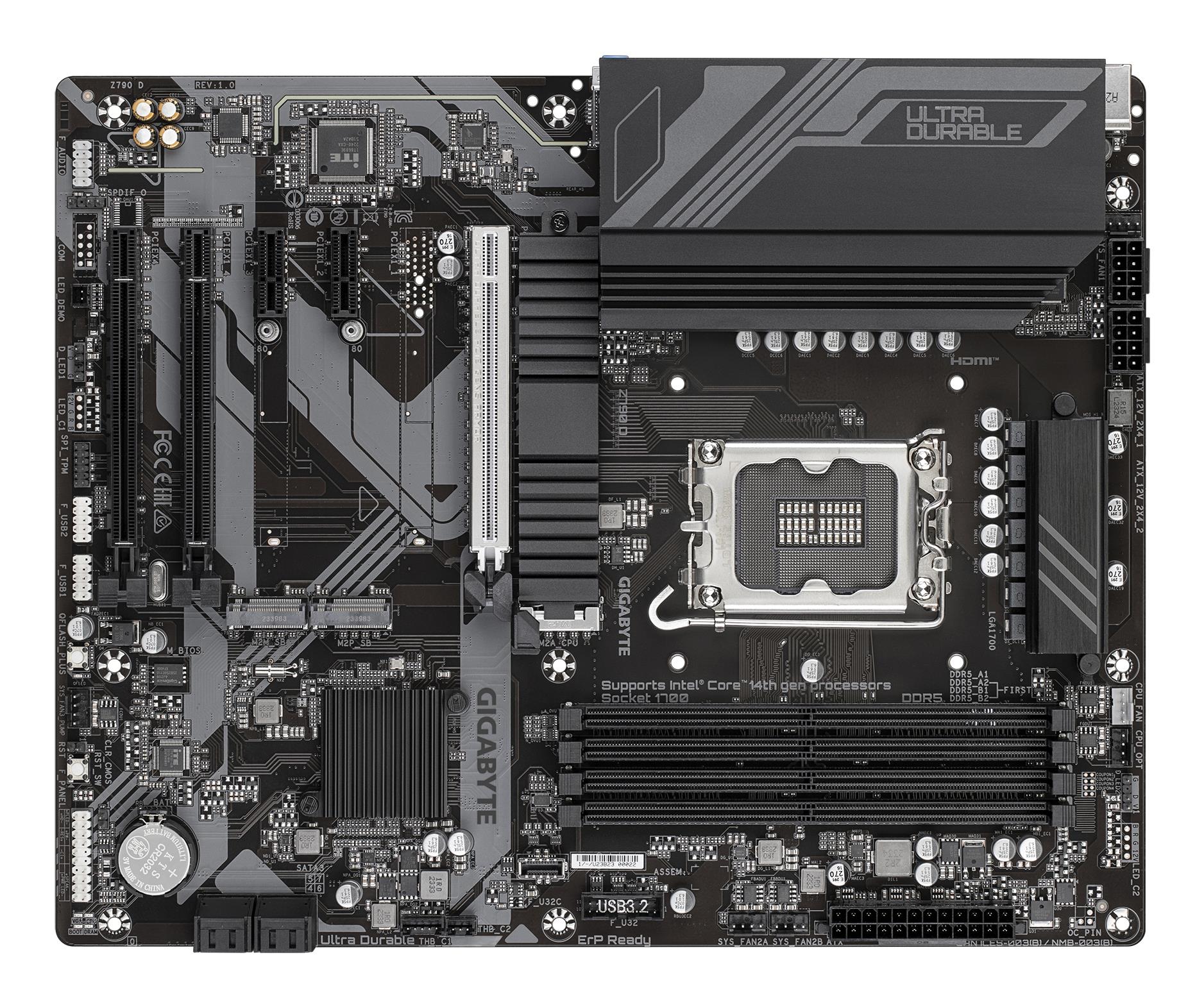 Summary: GIGABYTE Z790 D Motherboard - Supports Intel Core 14th Gen CPUs, 12+1+1 Phases Digital VRM, up to 7600MHz DDR5 (OC), 3xPCIe 4.0 M.2, 2.5GbE LAN, USB 3.2 Gen 2. Processor manufacturer: Intel, Processor socket: LGA 1700, Compatible processor series: Intel® Celeron®, Intel® Core™ i3, Intel® Core™ i5, Intel® Core™ i7, Intel® Core™ i9,.... Supported memory types: DDR5-SDRAM, Maximum internal memory: 192 GB, Memory slots type: DIMM. Supported storage drive interfaces: M.2, PCI Express 4.0, SATA III, Supported storage drive types: HDD & SSD, RAID levels: 0, 1, 5, 10. Maximum resolution: 4096 x 2304 pixels. USB connector type: USB Type-A, USB Type-C