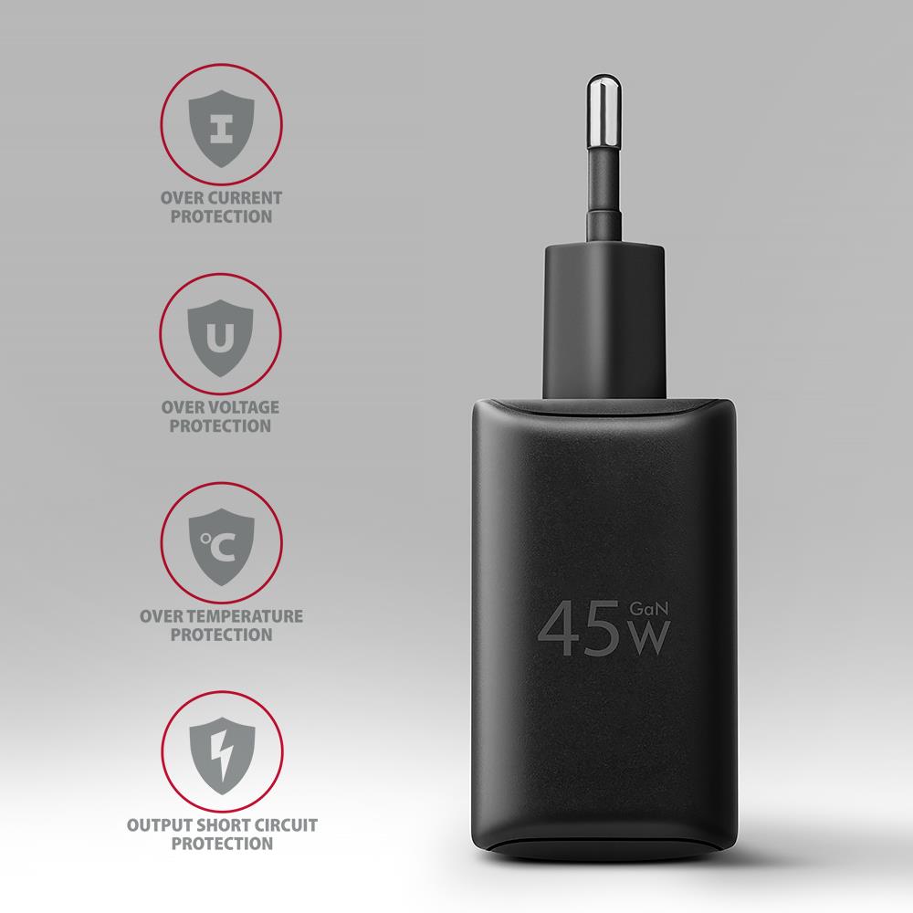 MOBILE CHARGER WALL USB 45W/GAN 2PORT ACU-PQ45 AXAGON