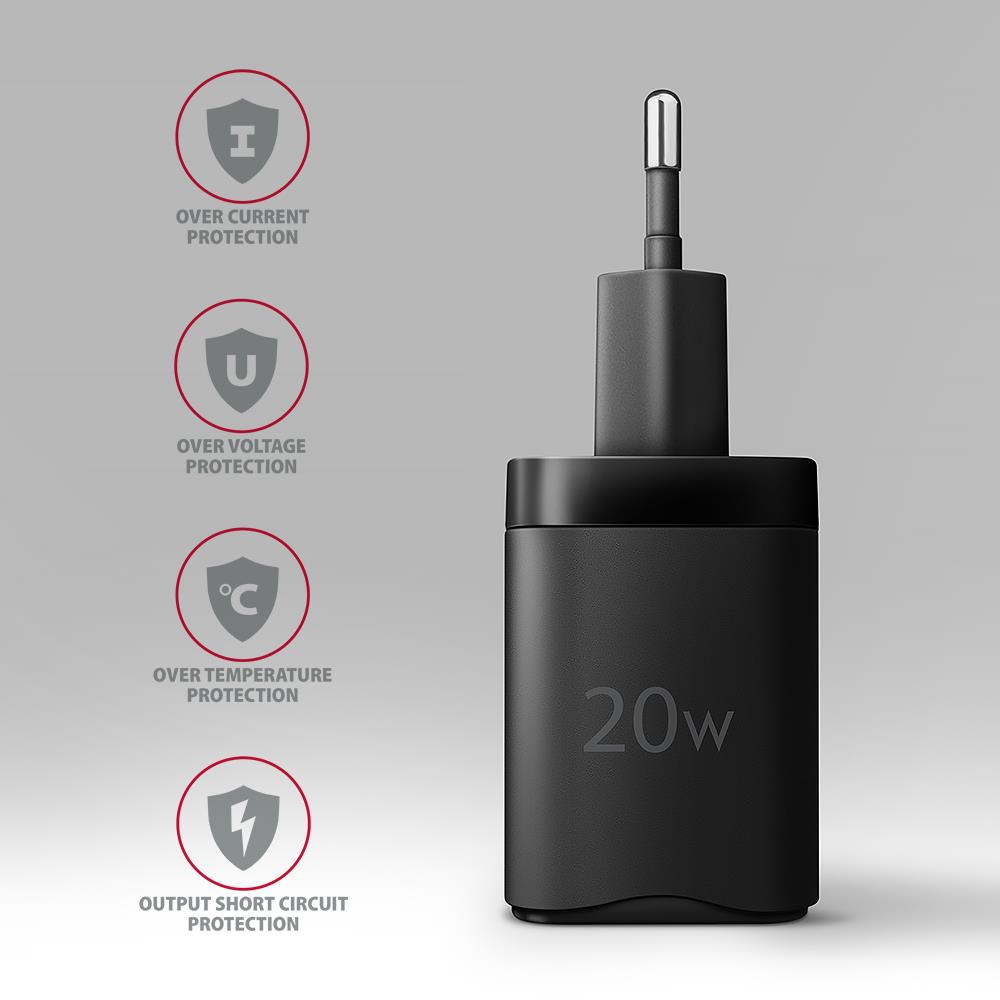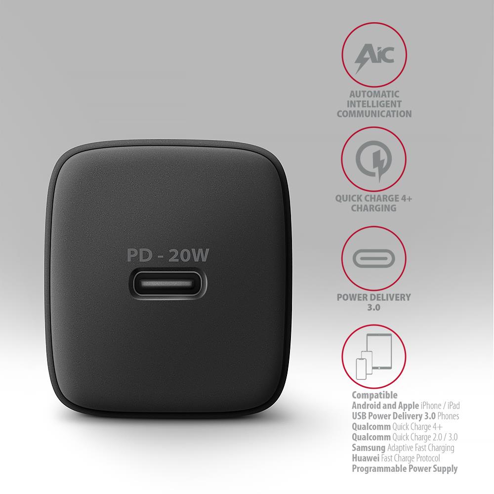 MOBILE CHARGER WALL USB-C 20W/1PORT BLACK ACU-PD20 AXAGON
