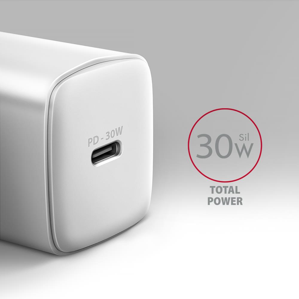 MOBILE CHARGER WALL USB-C 30W/1PORT WHITE ACU-PD30W AXAGON