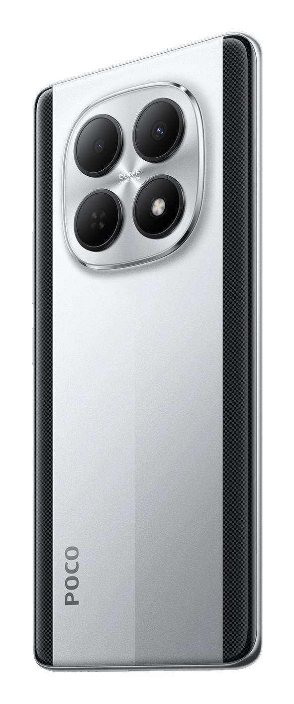 Summary: POCO M8 5G. Display diagonal: 17.2 cm (6.77"), Display resolution: 2392 x 1080 pixels. Processor family: Qualcomm Snapdragon, Processor model: 6 Gen 3. RAM capacity: 8 GB, RAM type: LPDDR4X, Internal storage capacity: 256 GB. Rear camera resolution (numeric): 50 MP, Rear camera type: Dual camera. SIM card capability: Hybrid Dual SIM. Battery capacity: 5520 mAh. Product colour: Silver. Weight: 178 g