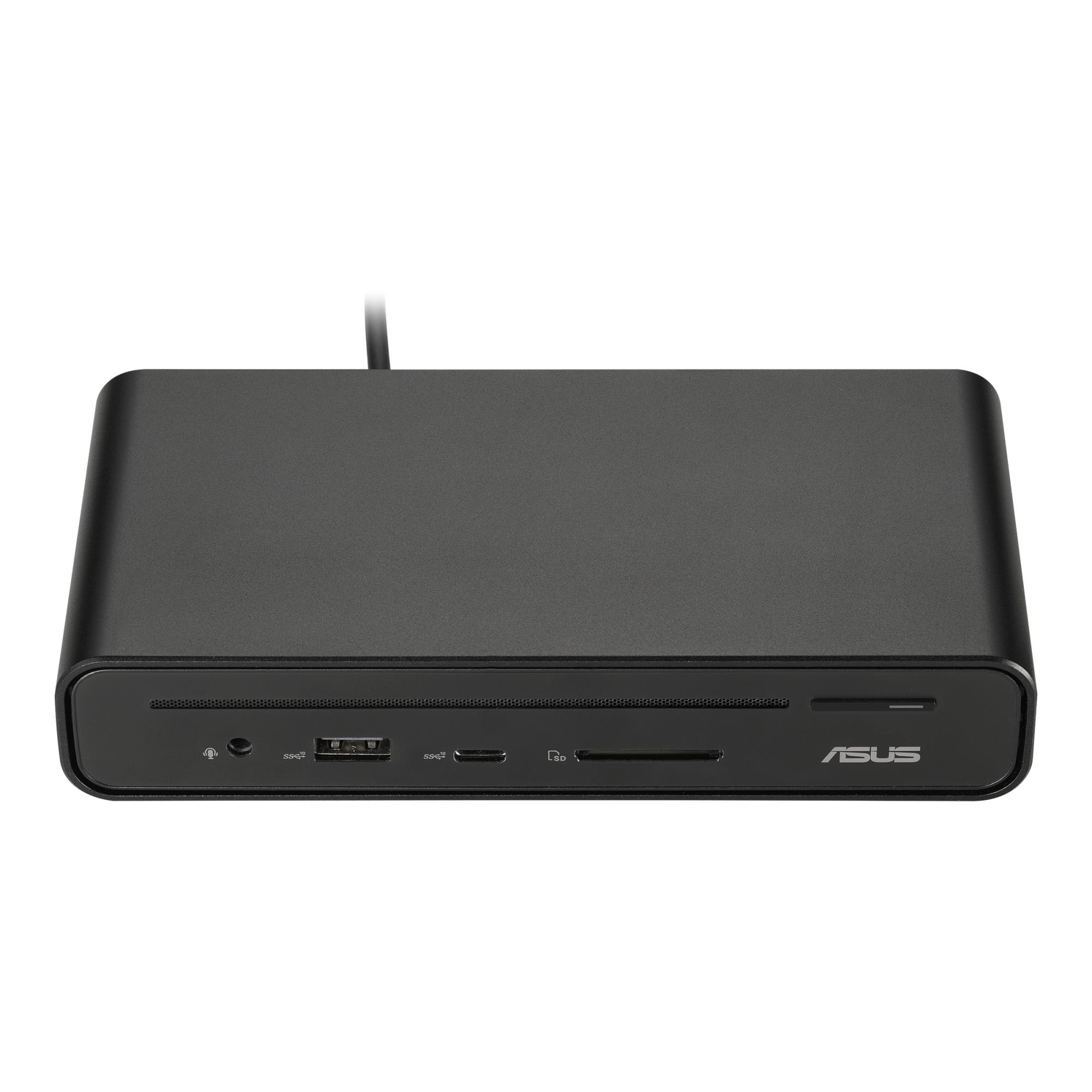 Long Description: ASUS Triple Display USB-C Dock DC300. Connectivity technology: Docking, Host interface: USB 3.2 Gen 2 (3.1 Gen 2) Type-C, USB Power Delivery up to: 90 W. Ethernet LAN data rates: 10,100,1000 Mbit/s. Product colour: Black, Compatible memory cards: SD, Maximum digital resolution: 3840 x 2160 pixels. Power source type: DC, USB, Power supply: 150 W, Output voltage: 20 V. Windows operating systems supported: Windows 10