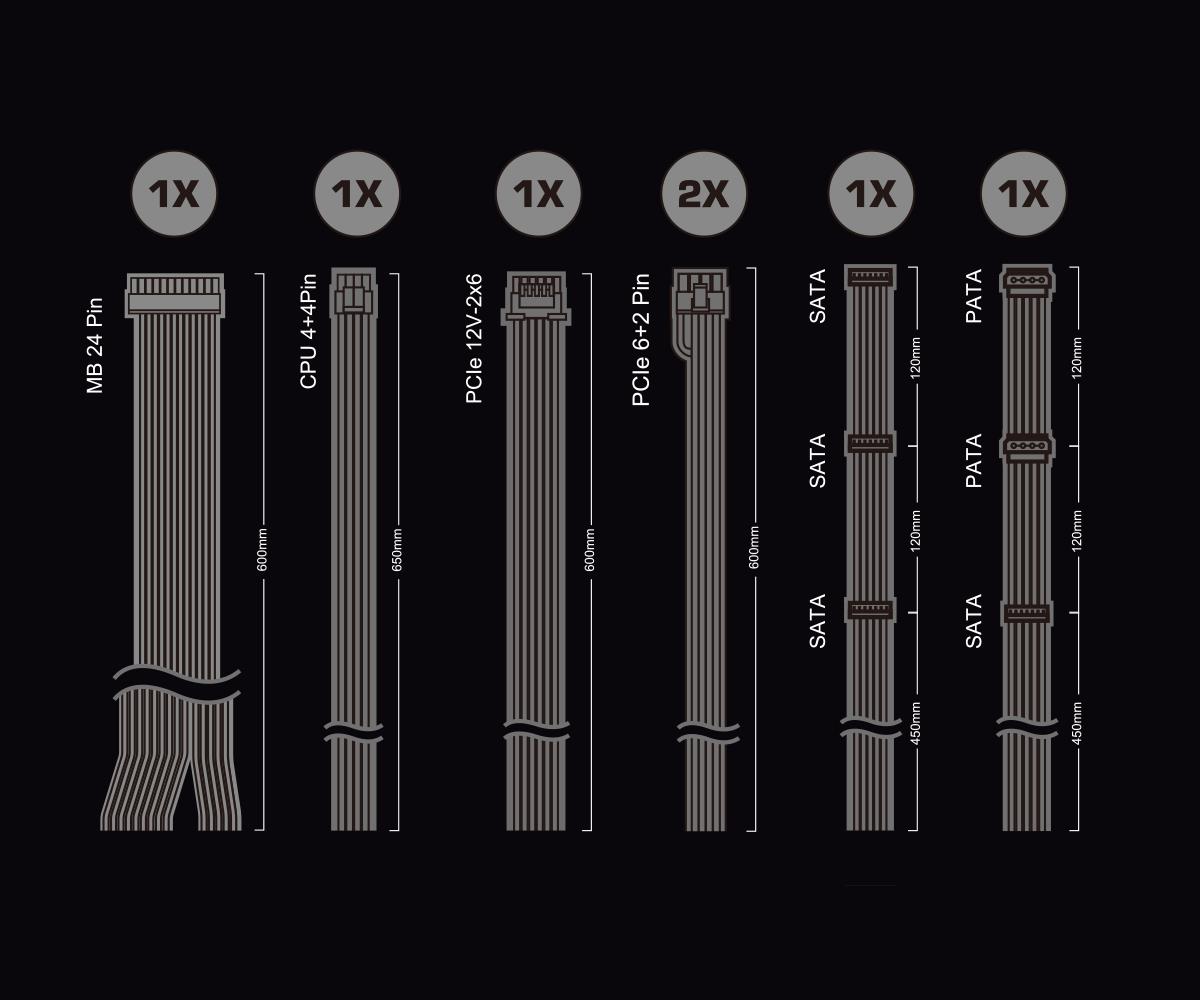 SATA power cable length: 450/570/690 mm
