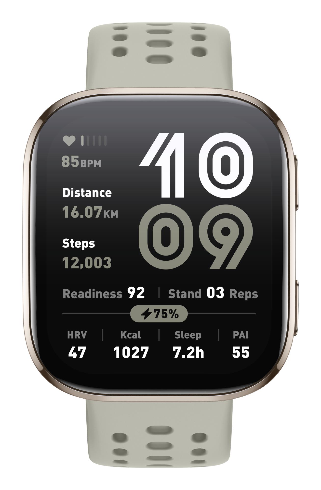 Summary: Amazfit Bip 6 Stone. Display diagonal: 5 cm (1.97"), Display technology: AMOLED, Display resolution: 390 x 450 pixels, Touchscreen. RAM capacity: 64 MB, Flash memory: 512 GB. GPS (satellite). Battery capacity: 340 mAh. Weight: 27.9 g. Band material: Silicone, Band colour: Grey. Operating system installed: Amazfit OS